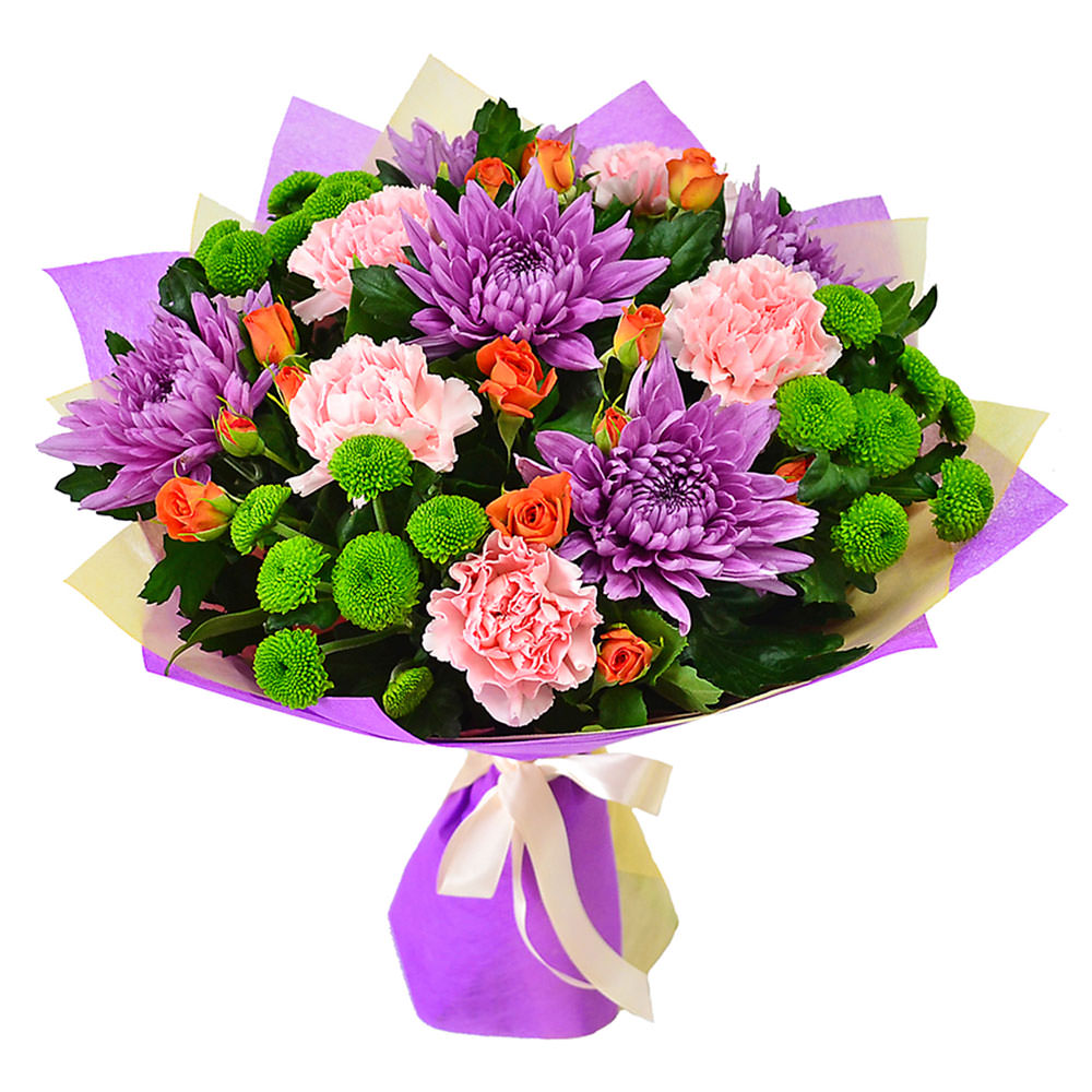 На фото представлен образец. Объем букета зависит от выбранного вами размера. Точное количество цветов и цветовую гамму вы можете уточнить у менеджера по телефону.